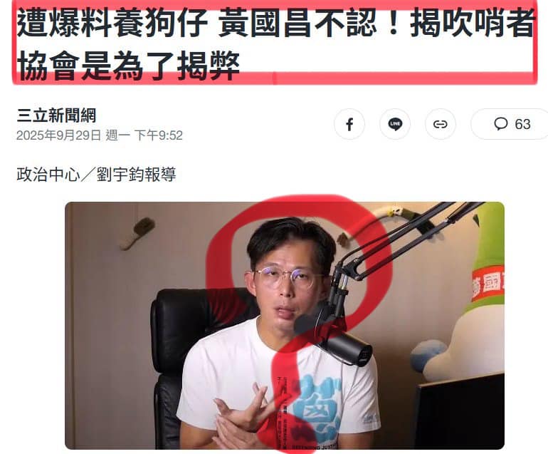 黃國昌養狗仔跟拍政治人物,被踢爆後神隱數日。再現身時,黃國昌美化他的狗仔為吹哨者,目的在揭弊。黃國昌的狡辯是典型的掛羊頭賣狗肉。 黃國昌曾經成立「吹哨者保護協會」的組織。在昨天的直播,黃國昌把狗仔跟拍的惡行全部推給這個協會。黃國昌的狡辯有幾大漏洞: 一、養狗仔是黃國昌的個人行為,他卻嫁禍一個登記有案的「吹哨者保護協會」。 二、為了方便嫁禍,黃國昌簡稱他成立的協會為「吹哨者協會」,省略了「保護」兩字。 三、吹哨者保護協會的宗旨在保護吹哨者免受報復,而非雇用狗仔跟拍政治人物。 四、黃國昌省略「保護」兩字,目的在扭曲該協會的功能,從保護吹哨者變成狗仔跟拍。 黃國昌的狡辯屬典型的掛羊頭賣狗肉:掛著「保護吹哨者」的羊頭,賣的卻是「跟拍政敵」的狗肉。黃國昌的狡辯污衊了「吹哨者」的名號。 吹哨者其實就是密告者,因為職務的關係目睹組織的違法亂紀,而且可取得具體的證據。為了鼓勵他們挺身而出,許多國家都設有保護吹哨者的法律。 吹哨者保護機制有幾個要點:組織成員、目睹違法、秘密告發、受到保護。 就以王義川闖紅燈為例,潛在的吹哨者應該是他辦公室的助理,親眼目睹王義川闖紅燈,收集證據向警察局密報,而且受到法律的保護。 黃國昌雇用的狗仔根本不是吹哨者,理由如下: 一、黃國昌的狗仔不是王義川辦公室的成員。 二、黃國昌的狗仔沒機會目睹王義川闖紅燈,只能利用跟拍收集證據。 三、黃國昌的狗仔並未向警方密告王義川闖紅燈,反將照片交給沒品的立委爆料。 四、黃國昌的狗仔躲在暗處,並未受到法律的保護。 黃國昌的狗仔幹的是跟拍政敵的骯髒事,連媒體狗仔跟拍的公益性都沒有,卻還敢厚顏狡稱是吹哨者揭弊。 其次,黃國昌的狗仔並無檢調人員的揭弊訓練,亦無國家賦予的公權力,根本不適合揭弊。 最嚴重的是,黃國昌的狗仔只是政治鬥爭的工具,不僅沒有公益性,反經常製造冤案,增添政壇的煩擾。 掛羊頭賣狗肉的黃國昌為法律所不容,在政壇更無立足之地。